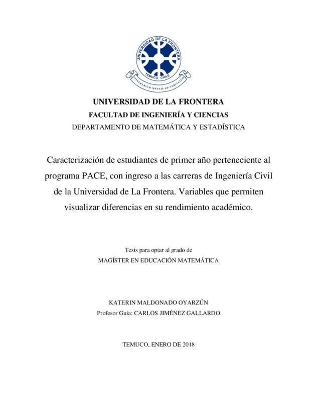 Caracterización de estudiantes de primer año perteneciente al programa PACE, con ingreso a las carreras de Ingeniería Civil de la Universidad de La Frontera. Variables que permiten visualizar diferencias en su rendimiento académico