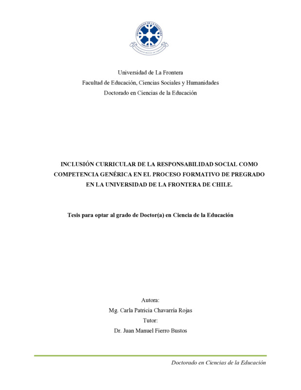 Inclusión curricular de la responsabilidad social como competencia genérica en el proceso formativo de pregrado en la Universidad de La Frontera de Chile