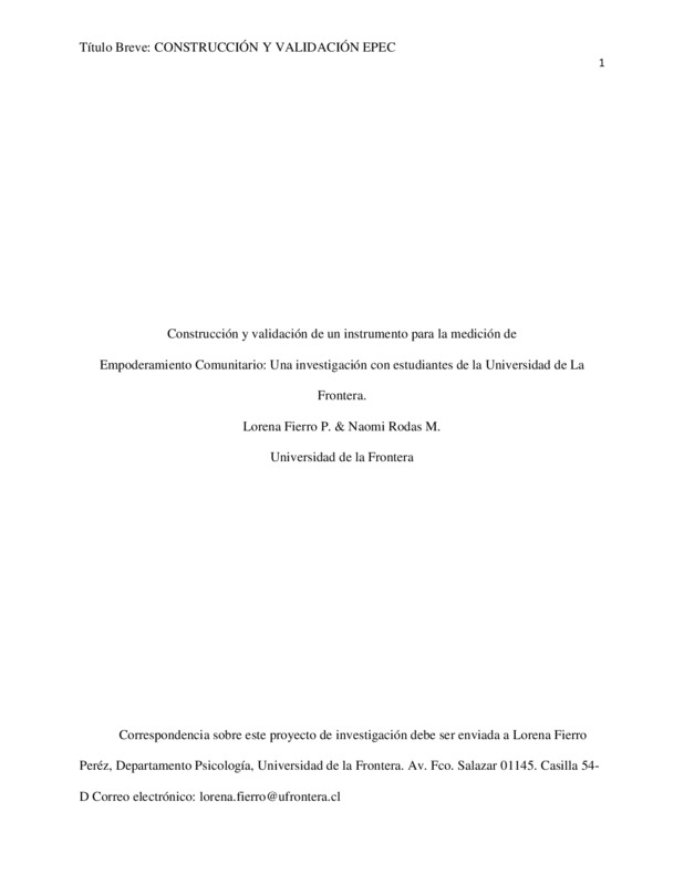 Construcción y validación de un instrumento para la medición de Empoderamiento Comunitario: una investigación con estudiantes de la Universidad de La Frontera