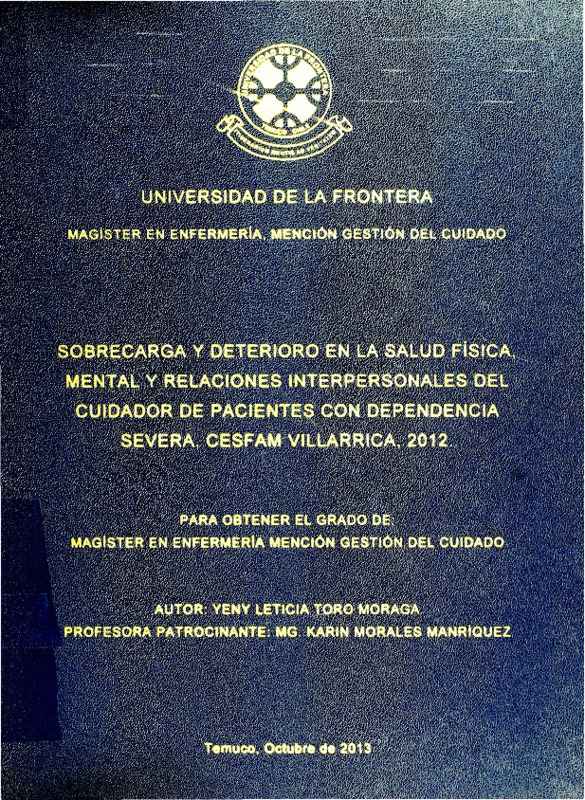 Sobrecarga y deterioro en la salud física, mental y relaciones interpersonales del cuidador de pacientes con dependencia severa, CESFAM Villarrica, 2012.