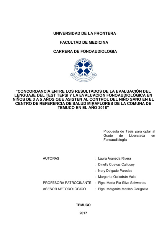 Concordancia entre los resultados de la evaluación del Lenguaje del test Tepsi y la evaluación fonoaudiológica en Niños de 3 a 5 años que asisten al control del niño sano en el Centro de referencia de salud Miraflores de la comuna de Temuco en el año 2018