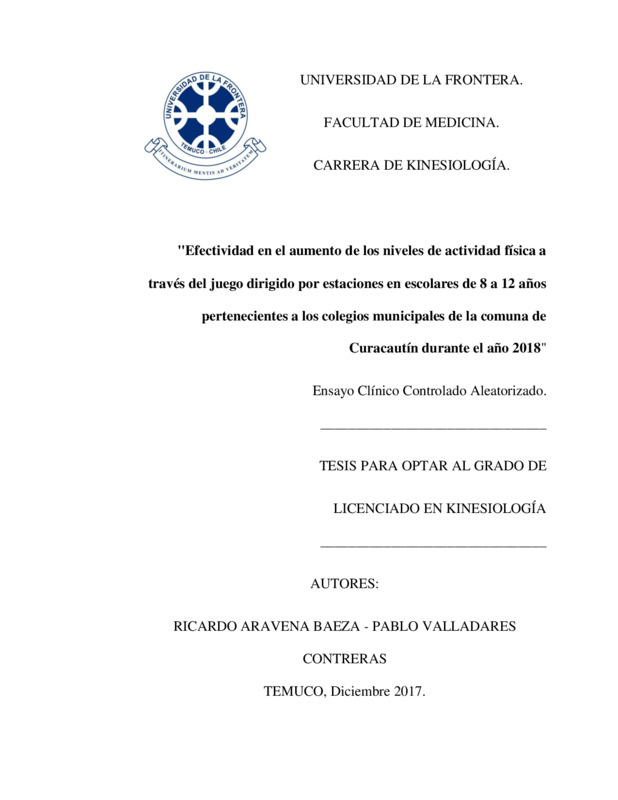 Efectividad en el aumento de los niveles de actividad física a través del juego dirigido por estaciones en escolares de 8 a 12 años pertenecientes a los colegios municipales de la comuna de Curacautín durante el año 2018. Ensayo Clínico Controlado Aleatorizado