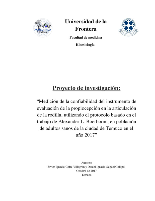 Medición de la confiabilidad del instrumento de evaluación de la propiocepción en la articulación de la rodilla, utilizando el protocolo basado en el trabajo de Alexander L. Boerboom, en población de adultos sanos de la ciudad de Temuco en el año 2017
