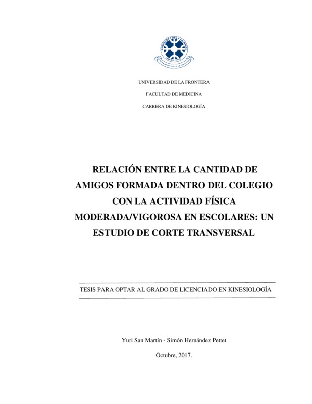Relación entre la cantidad de amigos formada dentro del colegio con la actividad física moderada/vigorosa en escolares: un estudio de corte transversal
