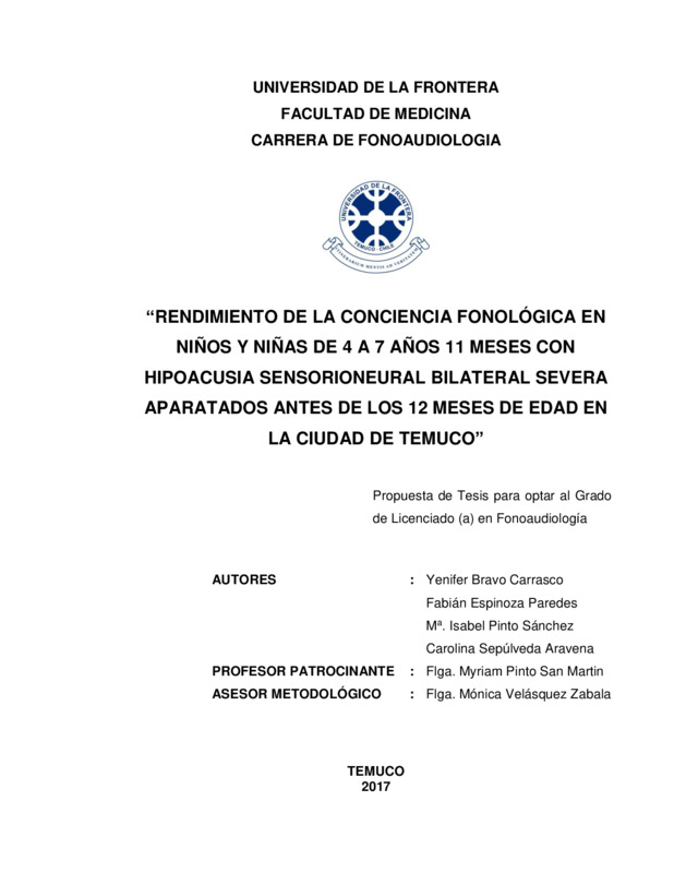 Rendimiento de la conciencia fonológica en niños y niñas de 4 a 7 años 11 meses con hipoacusia sensorioneural bilateral severa aparatados antes de los 12 meses de edad en la ciudad de Temuco