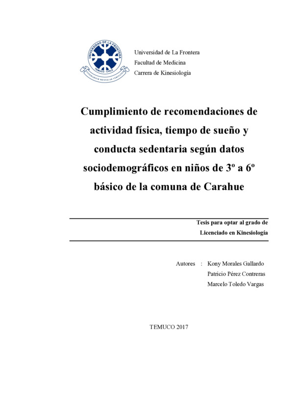 Cumplimiento de recomendaciones de actividad física, tiempo de sueño y conducta sedentaria según datos sociodemográficos en niños de 3º a 6º básico de la comuna de Carahue