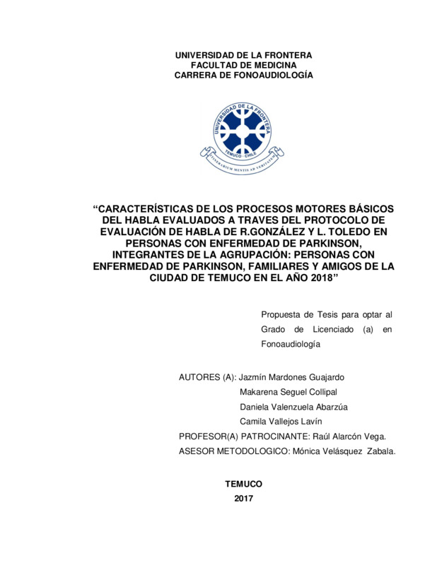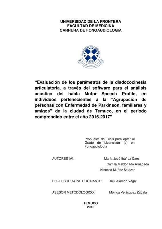 Evaluación de los parámetros de la diadococinesia articulatoria, a través del software para el análisis acústico del habla Motor Speech Profile, en individuos pertenecientes a la “Agrupación de personas con Enfermedad de Parkinson, familiares y amigos” de la ciudad de Temuco, en el periodo comprendido entre el año 2016-2017