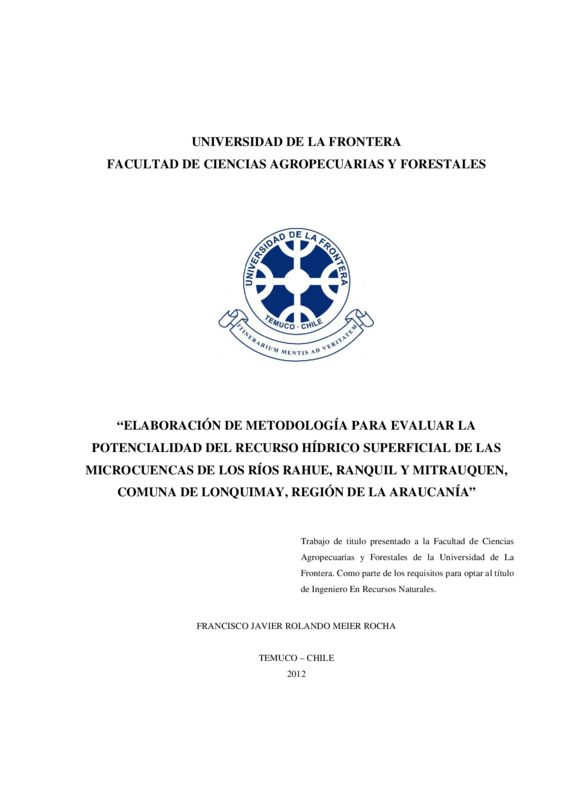 Elaboración de metodología para evaluar la potencialidad del recurso hídrico superficial de las microcuencas de los ríos Rahue, Ranquil y Mitrauquen, comuna de Lonquimay, región de La Araucanía