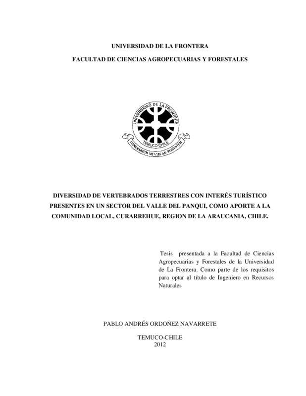 Diversidad de vertebrados terrestres con interés turístico presentes en un sector del Valle del Panqui, como aporte a la comunidad local, Curarrehue, región de La Araucania, Chile