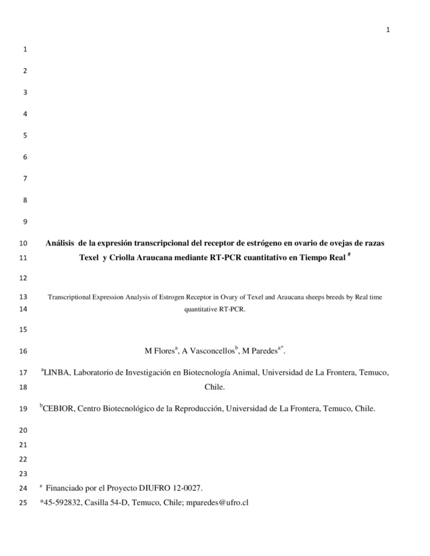 Análisis de la expresión transcripcional del receptor de estrógeno en ovario de ovejas de razas Texel y Criolla Araucana mediante RT-PCR cuantitativo en Tiempo Real