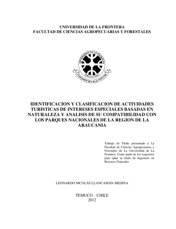 Identificación y clasificación de actividades turísticas de intereses especiales basadas en naturaleza y análisis de su compatibilidad con los parques nacionales de la región de La Araucanía