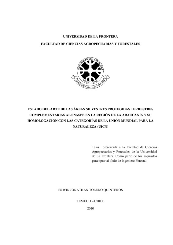 Estado del arte de las áreas silvestres protegidas terrestres complementarias al Snaspe en la región de La Araucanía y su homologación con las categorías de la unión mundial para la Naturaleza (UICN)