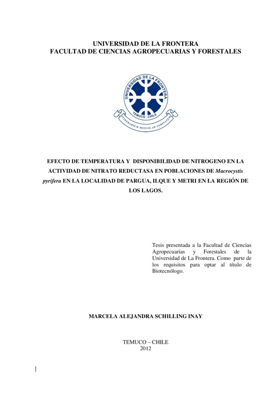 Efecto de temperatura y disponibilidad de Nitrógeno en la actividad de nitrato reductasa en poblaciones de Macrocystis Pyrifera en la localidad de Pargua, Ilque y Metri en la región de Los Lagos.