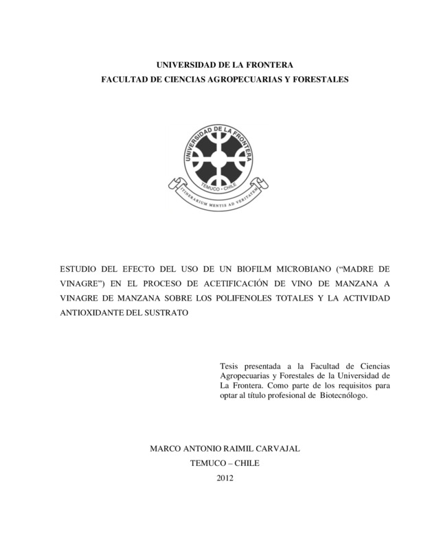 Estudio del efecto del uso de un biofilm microbiano (“madre de vinagre”) en el proceso de acetificación de vino de manzana a vinagre de manzana sobre los polifenoles totales y la actividad antioxidante del sustrato