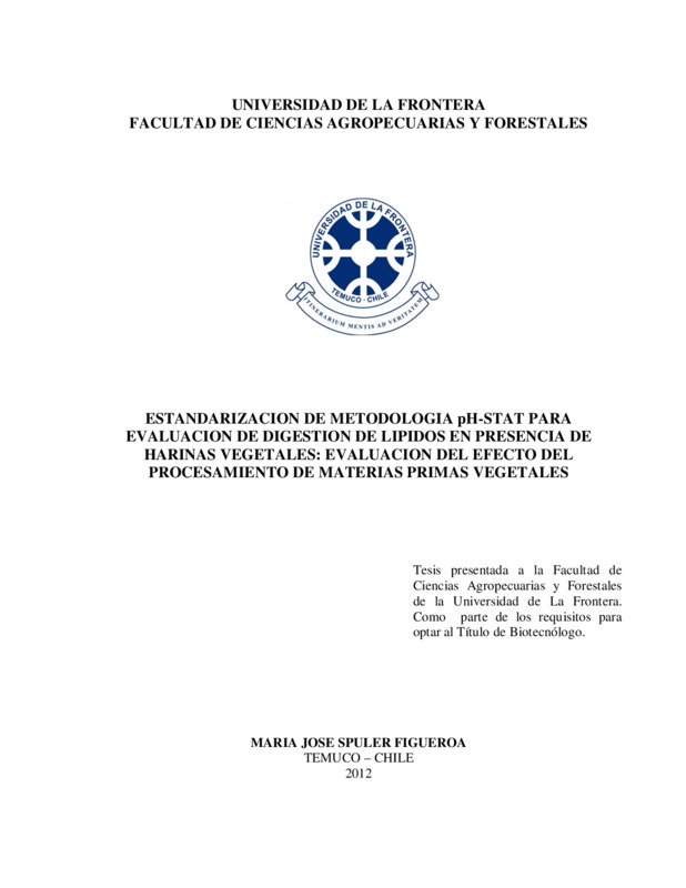 Estandarización de metodología pH-Stat para evaluación de digestión de lípidos en presencia de harinas vegetales: evaluación del efecto del procesamiento de materias primas vegetales