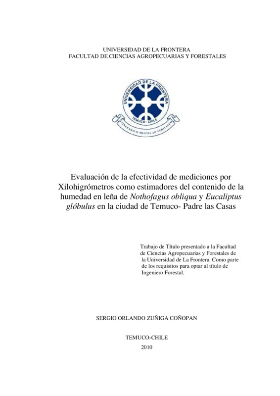 Evaluación de la efectividad de mediciones por Xilohigrómetros como estimadores del contenido de la humedad en leña de Nothofagus obliqua y Eucaliptus glóbulus en la ciudad de Temuco- Padre las Casas