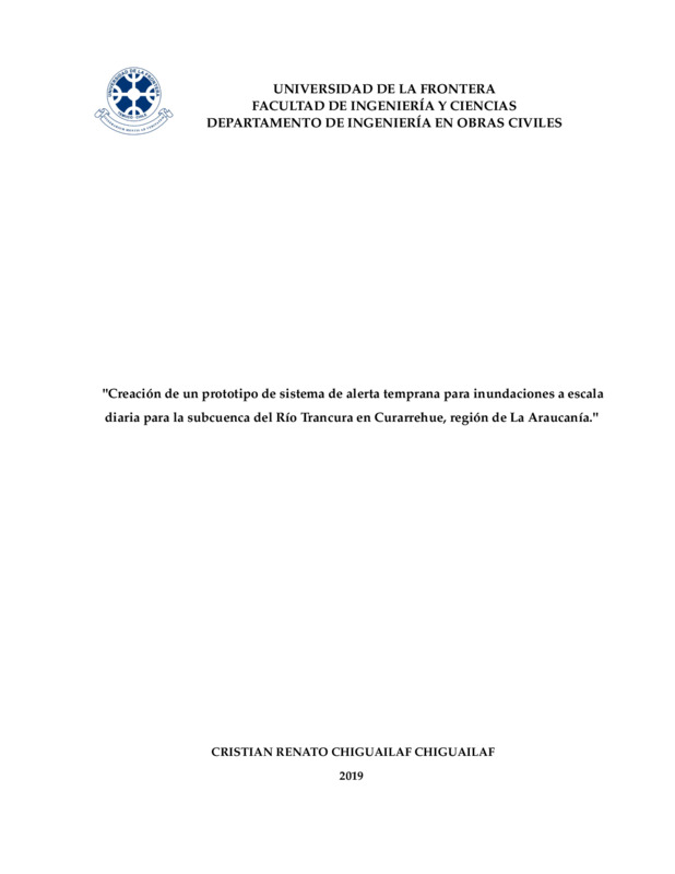 Creación de un prototipo de sistema de alerta temprana para inundaciones a escala diaria para la subcuenca del Río Trancura en Curarrehue, Región de La Araucanía