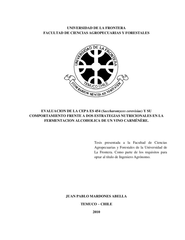Evaluación de la cepa ES 454 (Saccharomyces cerevisiae) y su comportamiento frente a dos estrategias nutricionales en la fermentación alcohólica de un vino Carménère