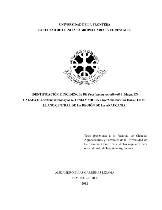 Identificación e incidencia de Puccinia meyeri-albertii P. Magn. en calafate (Berberis microphylla G. Forst.) y michay (Berberis darwinii Hook.) en el Llano Central de la región de La Araucanía