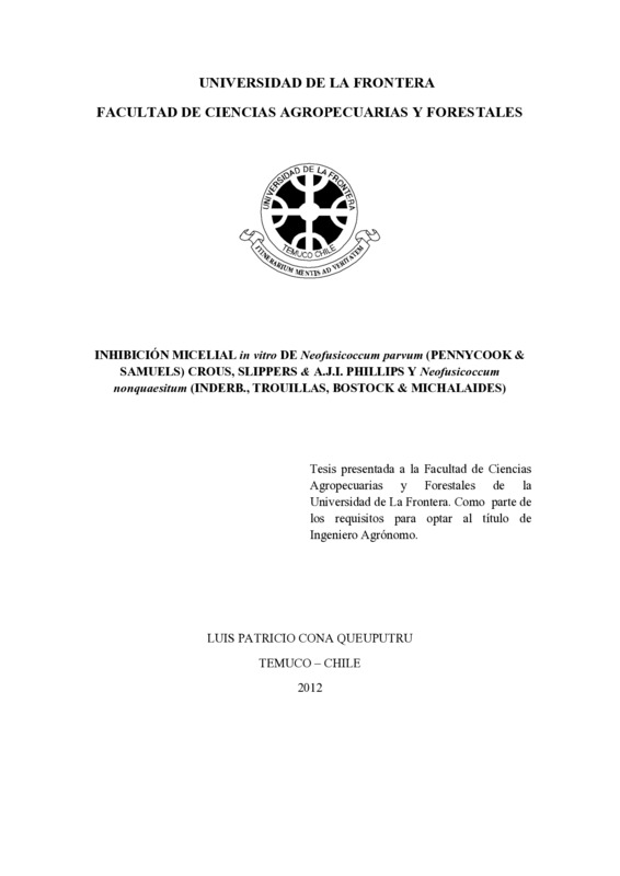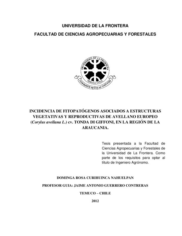 Incidencia de fitopatógenos asociados a estructuras vegetativas y reproductivas de avellano europeo (Corylus avellana L.) cv. Tonda di Giffoni, en la región de La Araucanía