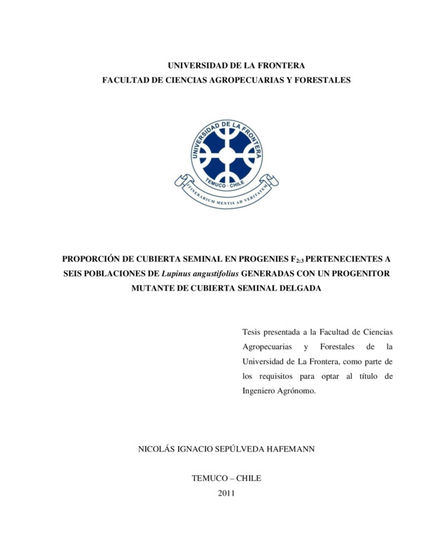 Proporción de cubierta seminal en progenies F 2:3 pertenecientes a seis poblaciones de Lupinus angustifolius generadas con un progenitor mutante de cubierta seminal delgada
