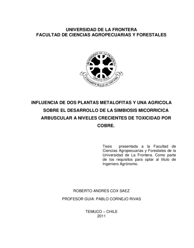 Influencia de dos plantas metalofitas y una agrícola sobre el desarrollo de la simbiosis micorricica arbuscular a niveles crecientes de toxicidad por cobre