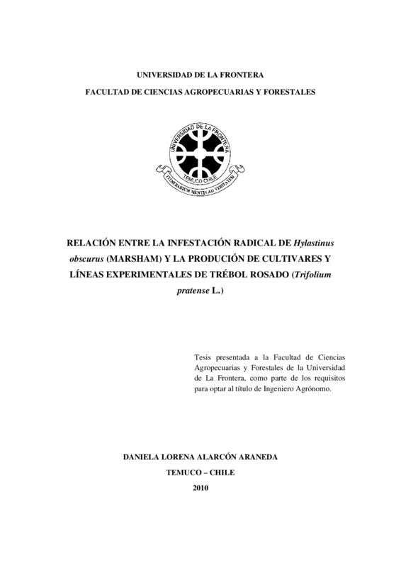Relación entre la infestación radical de Hylastinus obscurus (Marsham) y la producción de cultivares y líneas experimentales de trébol rosado (trifolium pratense L.)