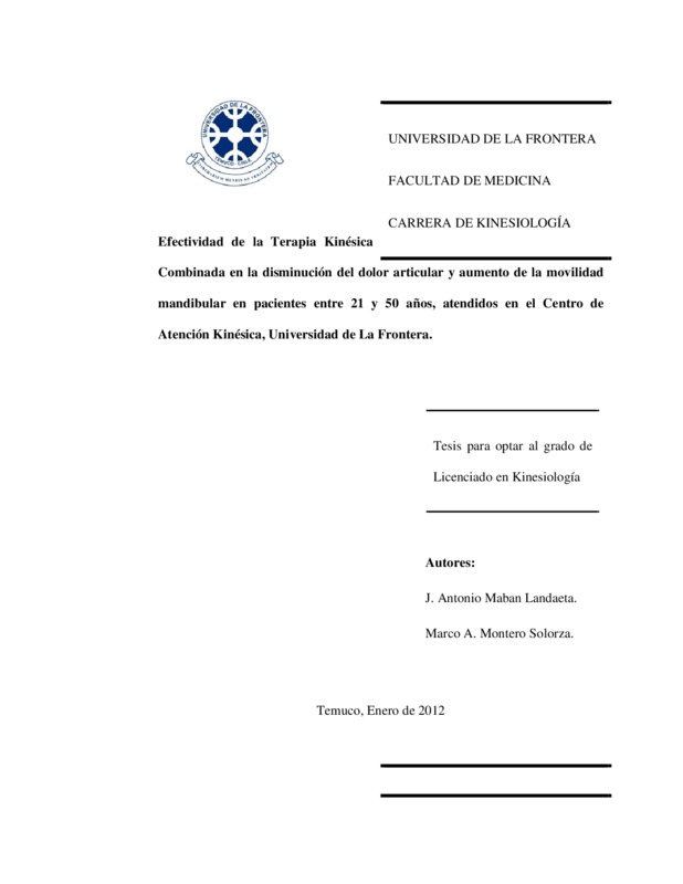 Efectividad de la terapia kinésica combinada en la disminución del dolor articular y aumento de la movilidad mandibular en pacientes entre 21 y 50 años, atendidos en el Centro de Atención Kinésica, Universidad de La Frontera