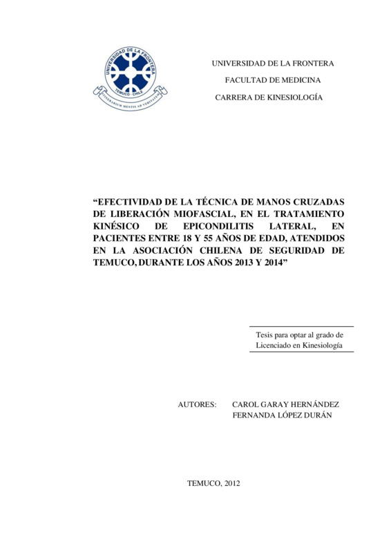 Efectividad de la técnica de manos cruzadas de liberación miofascial, en el tratamiento kinésico de epicondilitis lateral, en pacientes entre 18 y 55 años de edad, atendidos en la Asociación Chilena de Seguridad de Temuco, durante los años 2013 y 2014