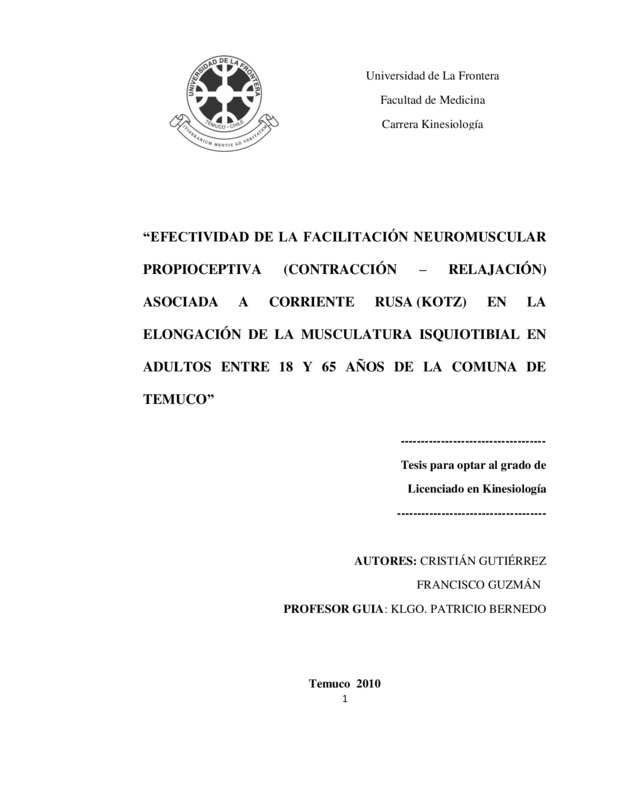 Efectividad de la facilitación neuromuscular propioceptiva (contracción-relajación) asociada a corriente rusa (kotz) en la elongación de la musculatura isquiotibial en adultos entre 18 y 65 años de la comuna de Temuco