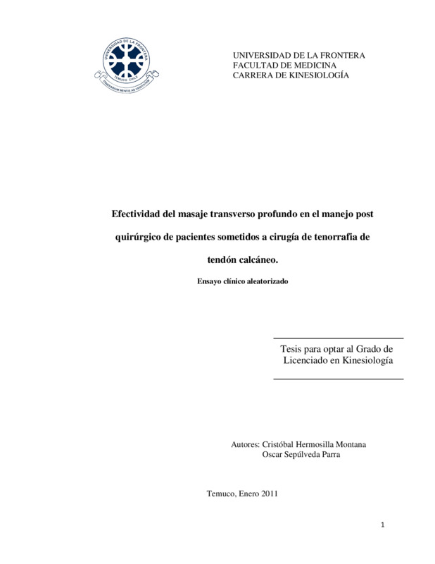 Efectividad del masaje transverso profundo en el manejo post quirúrgico de pacientes sometidos a cirugía de tenorrafia de tendón calcáneo : Ensayo clínico aleatorizado