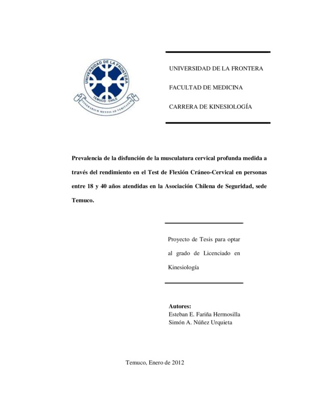 Prevalencia de la disfunción de la musculatura cervical profunda medida a a través del rendimiento en el Test de flexión cráneo-cervical en personas entre 18 y 40 años atendidas en la Asociación Chilena de Seguridad, sede Temuco