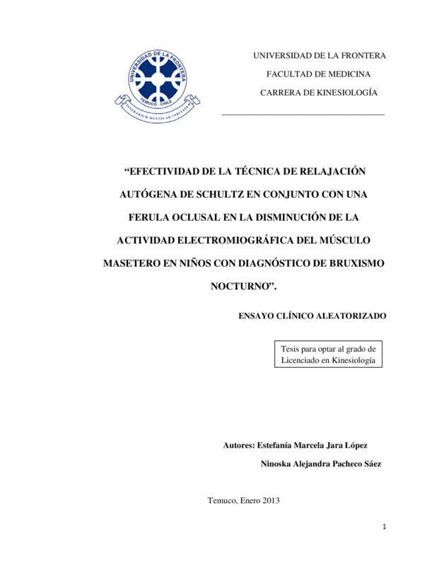 Efectividad de la técnica de relajación autógena de Schultz en conjunto con una ferula oclusal en la disminución de la actividad electromiográfica del músculo masetero en niños con diagnóstico de bruxismo nocturno