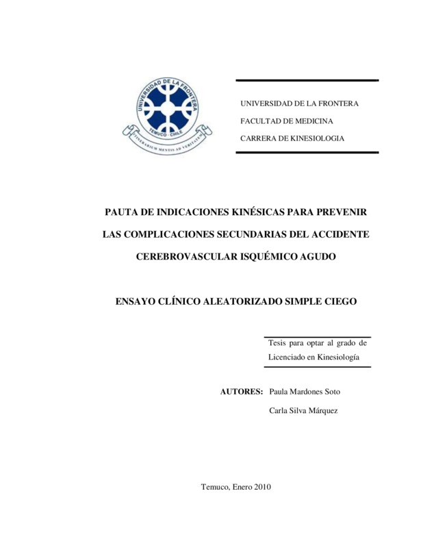 Pauta de indicaciones kinésicas para prevenir las complicaciones secundarias del accidente cerebrovascular isquémico agudo. Ensayo clínico aleatorizado simple ciego