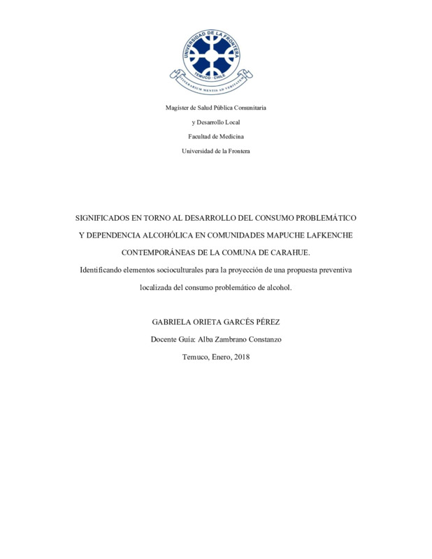 Significados en torno al desarrollo del consumo problemático y dependencia alcohólica en comunidades mapuche lafkenche contemporáneas de la comuna de Carahue. Identificando elementos socioculturales para la proyección de una propuesta preventiva localizada del consumo problemático de alcohol.