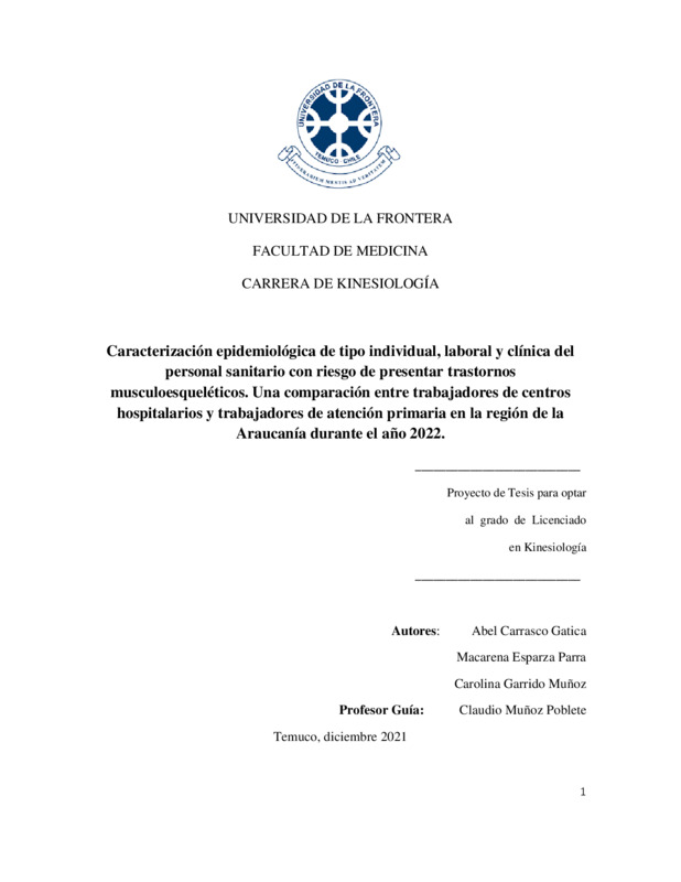 Caracterización epidemiológica de tipo individual, laboral y clínica del personal sanitario con riesgo de presentar trastornos musculoesqueléticos. Una comparación entre trabajadores de centros hospitalarios y trabajadores de atención primaria en la región de la Araucanía durante el año 2022.