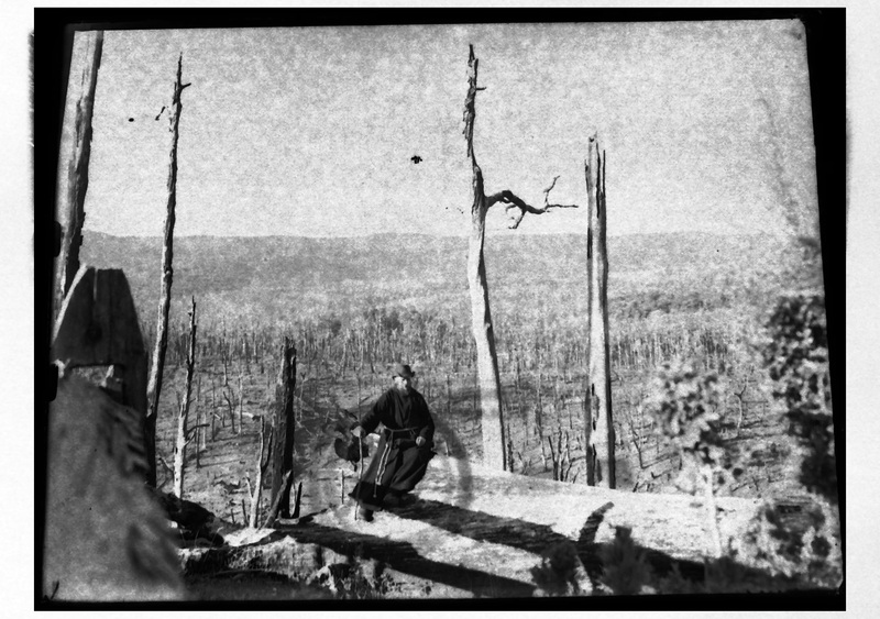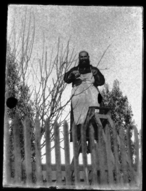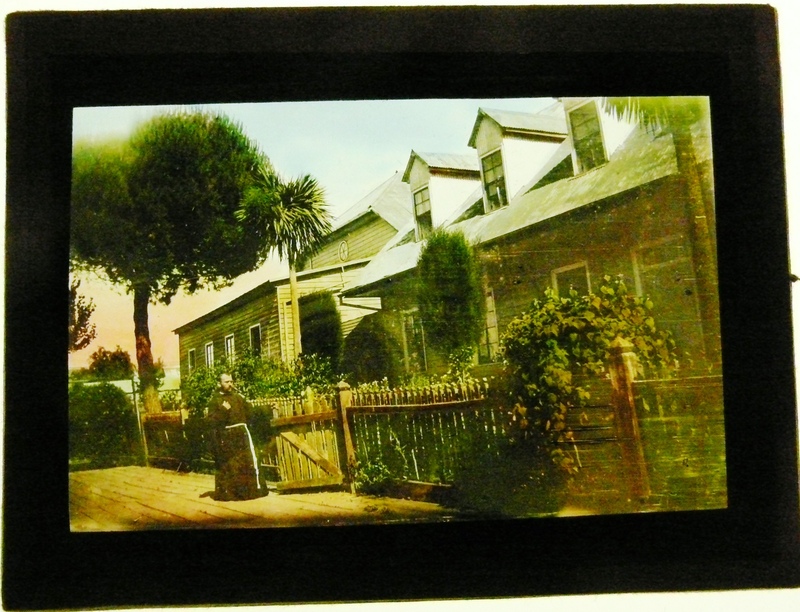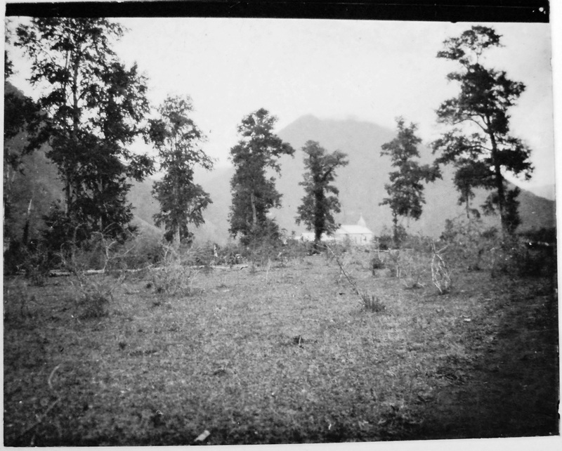 Un misionero capuchino afuera de unas casas