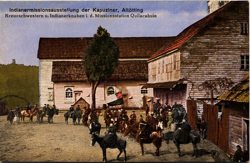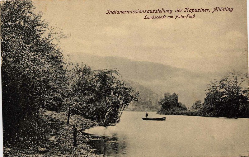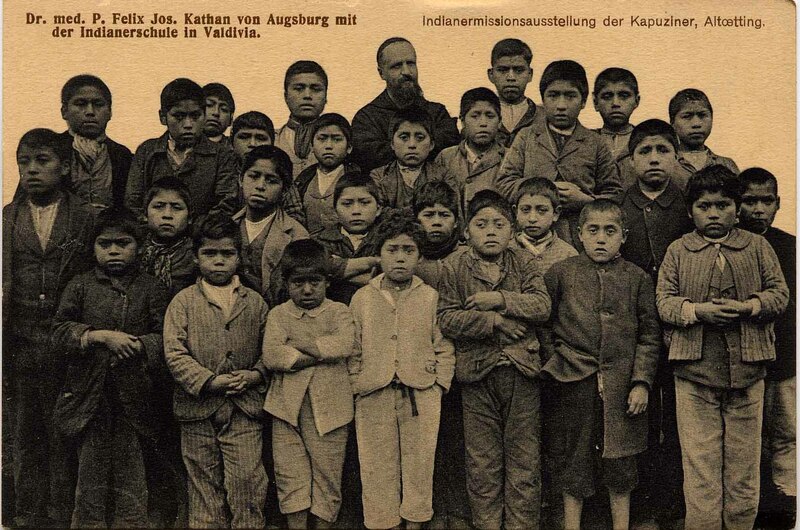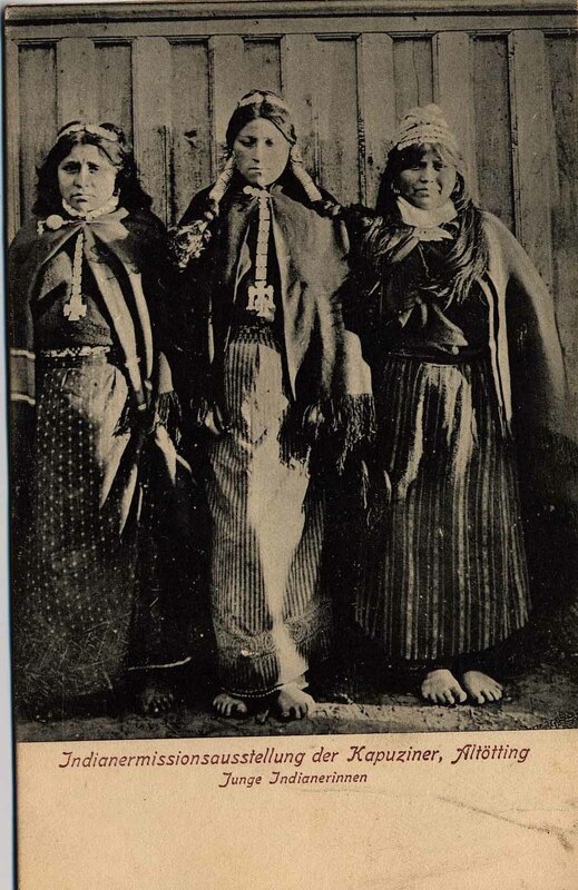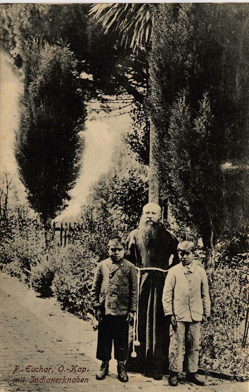 Postal - Indianermissionausstellung der Kapuziner, Altötting Missionsstation Villa Rika : P. Athanasius Kollermayer von Eglsee, Br. Leovigild Rohrmayer von Eitting und Indianerknaben