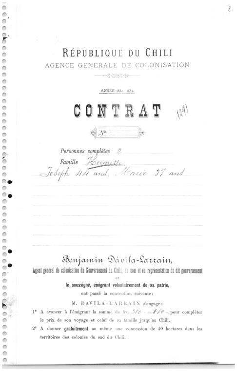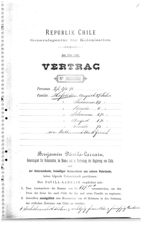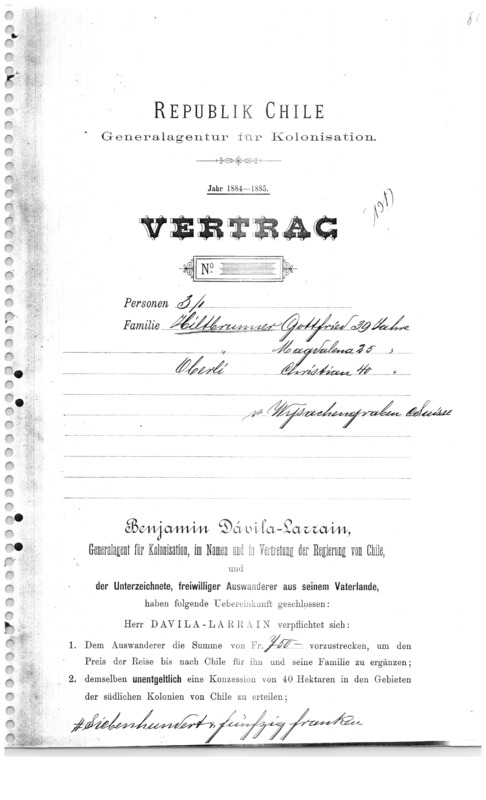 Hiltbrunner, Gottfried - Contrato de Colonos