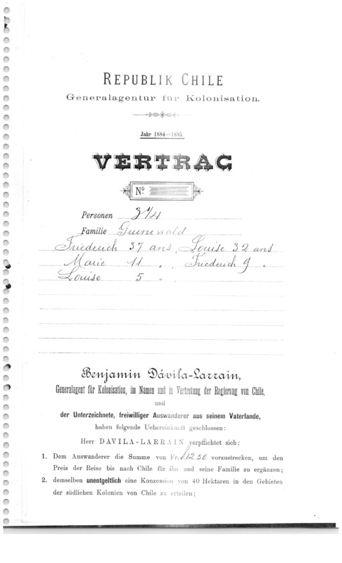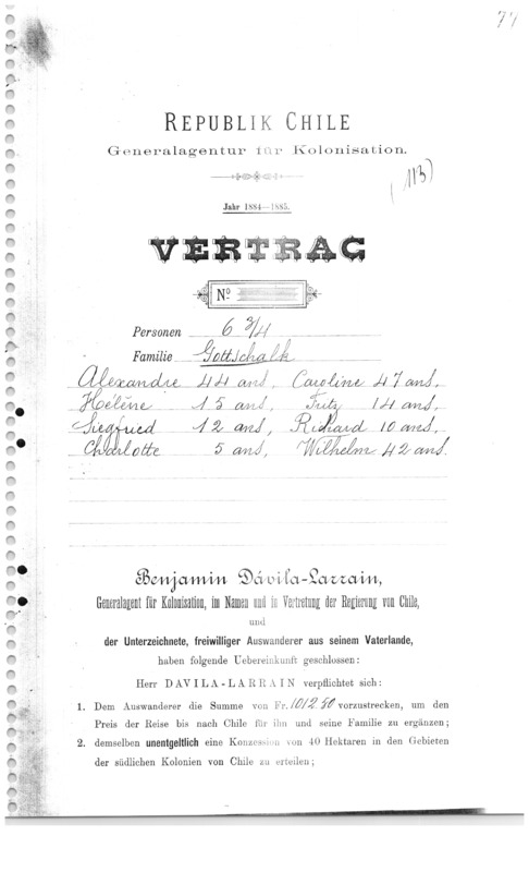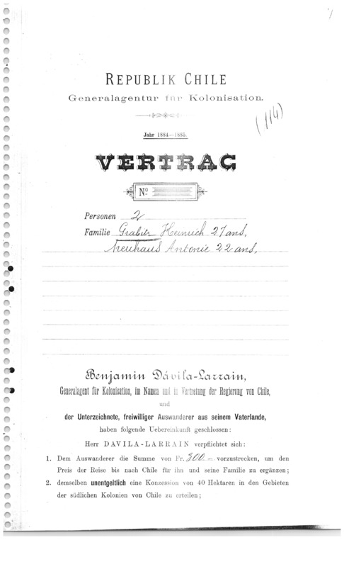 Grendelmeier, Gottlieb - Contrato de Colonos