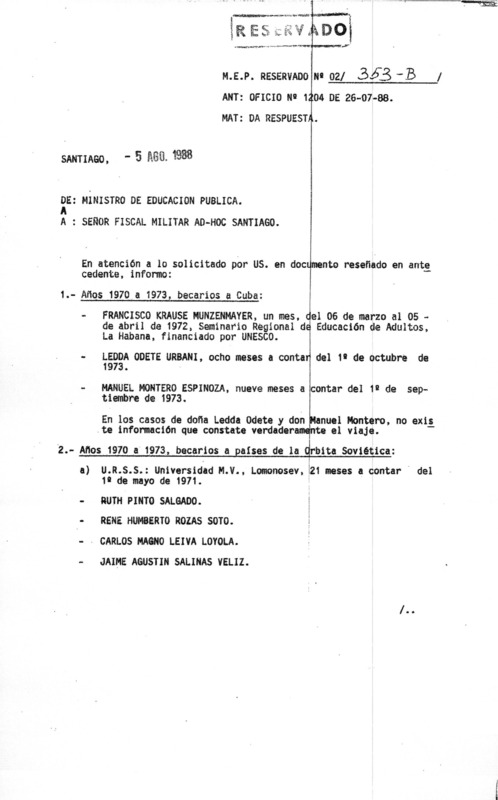 Becarios a Cuba, Unión Soviética, Varsovia y Alemania Democrática