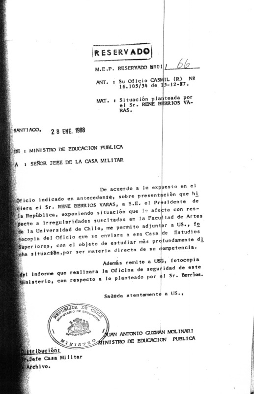 Correspondencia relativa a Berríos Varas: con adjuntos