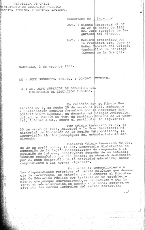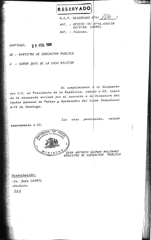 Reclamo del Centro Padres y Apoderados del Liceo Industrial A-19 de Santiago
