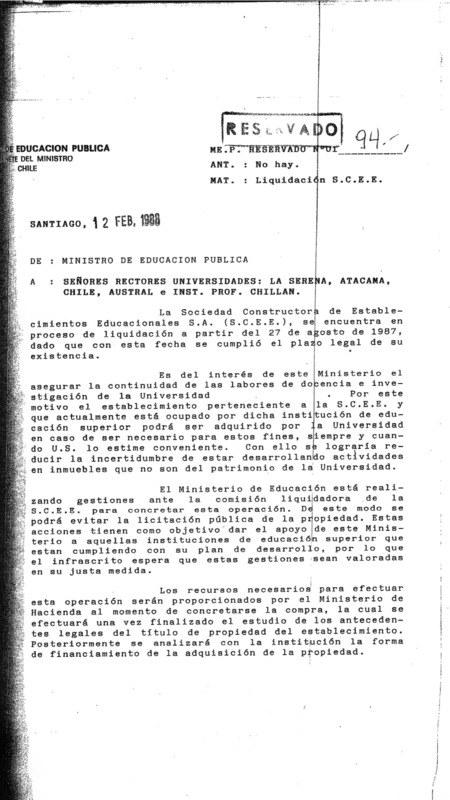 Sociedad Constructora de Establecimientos Educacionales S.A. Término legal