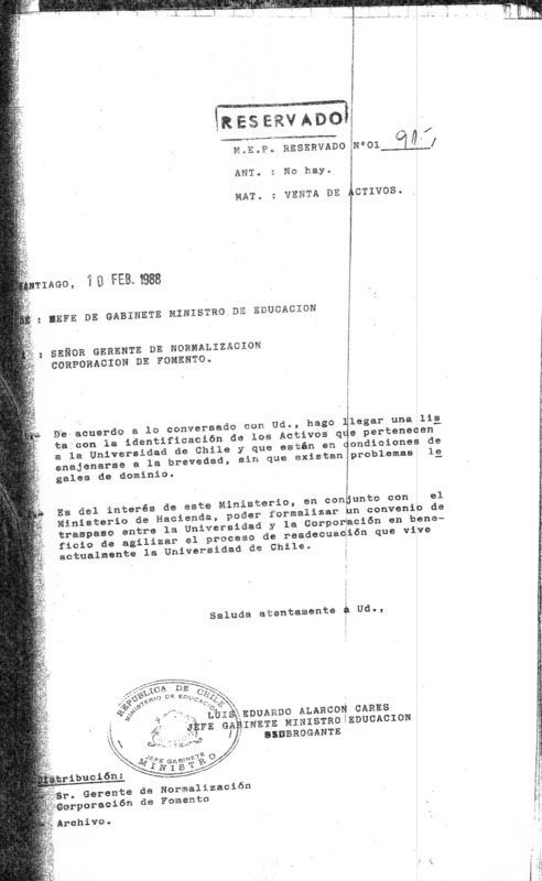 Activos de la Universidad de Chile en condiciones de enajenarse