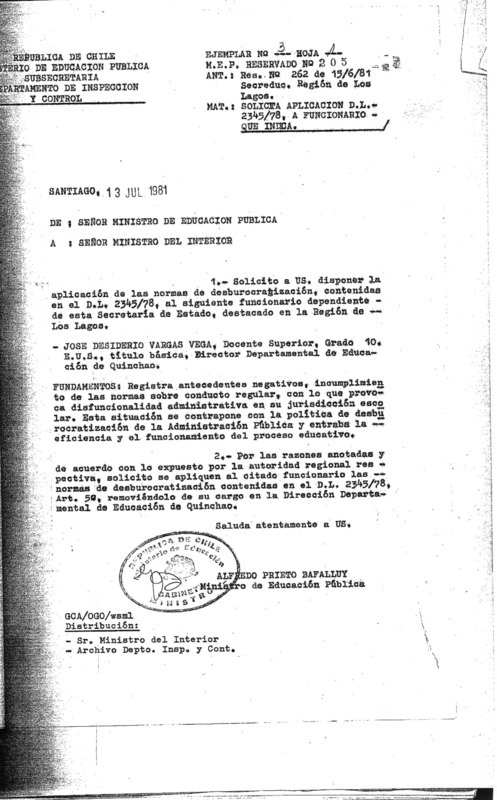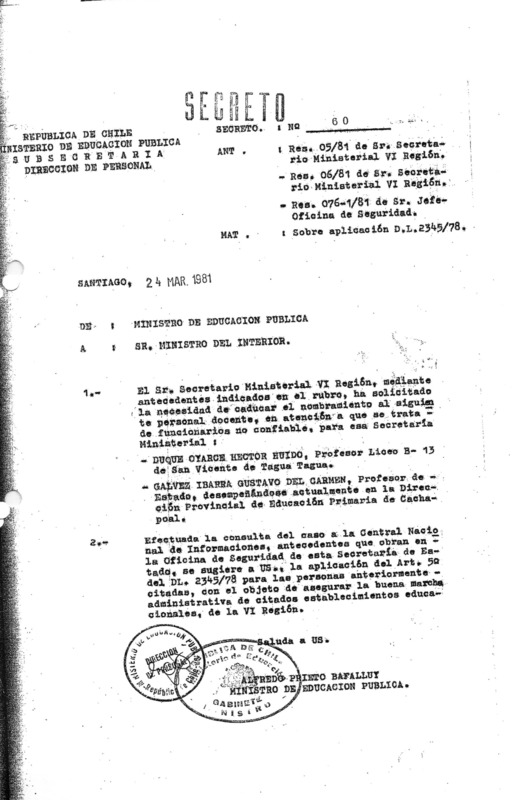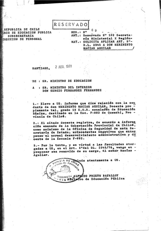 Exoneración de dos funcionarios del Ministerio de Educación de Llanquihue