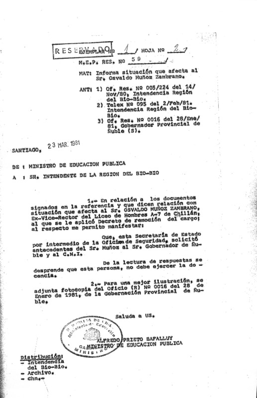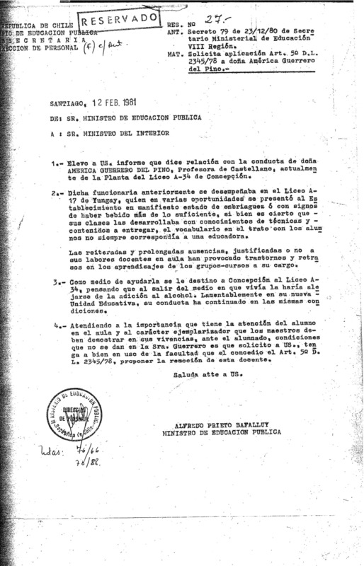 Exoneración de la profesora Cruces Alarcón