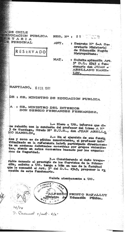 Solicitud de exoneración del profesor Arellano Hamelin