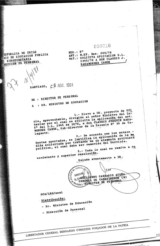 Exoneración de Bahamondes Camus