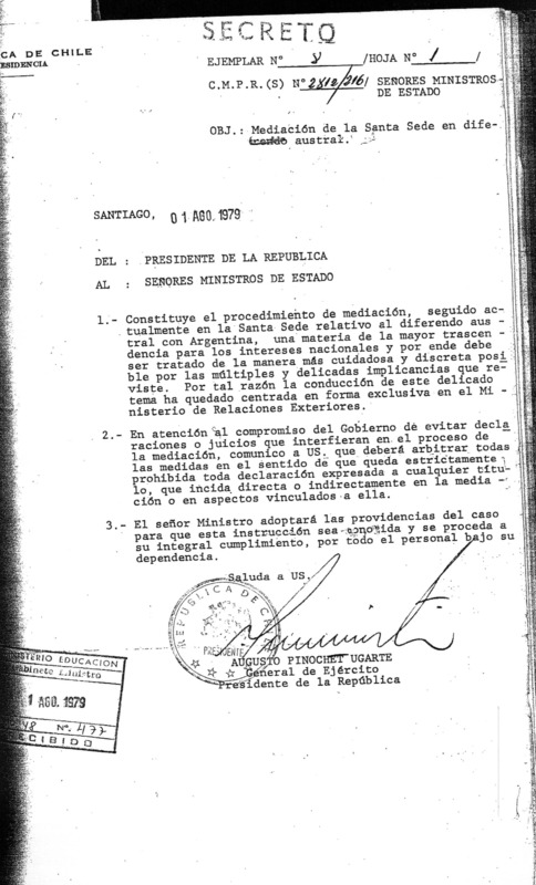 Mediación de la Santa Sede en diferendo Austral entre Chile y Argentina